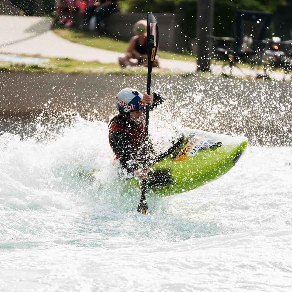 This bracket-style kayak race runs through the class III and IV rapids of the Competition Channel. Athletes compete in heats of three or four with the top two finishers in each heat moving on to the next round. The course requires athletes to navigate a series of gates and complete the channel as fast as possible.